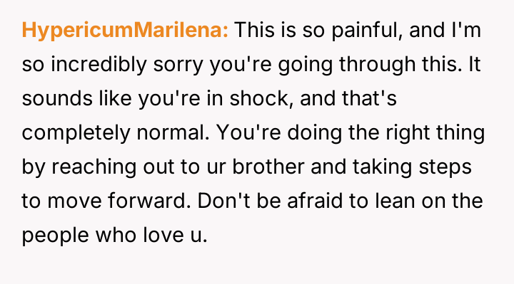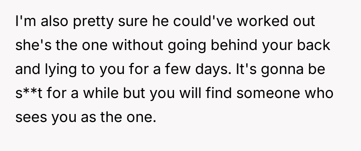 The original poster is currently in a state of shock and numbness after her husband revealed he spent time with another woman, concluding that he does not feel a romantic spark with her, despite their marriage.
