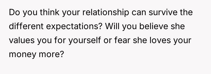 The central tension lies between the OP's commitment to a pre-es**blished agreement with his daughter and the expectation from his girlfriend and her family that he should extend similar, far more expensive, financial support to her children.