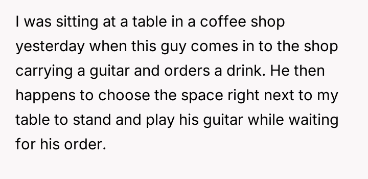 AITA for getting annoyed with the a guy playing his guitar in a coffee shop?