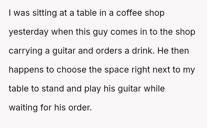 In the quiet hum of a bustling coffee shop, a silent clash unfolded between two strangers — one wielding a guitar, the other craving peace.