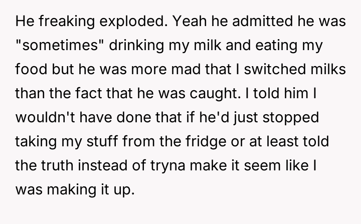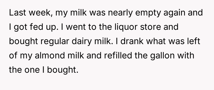 AITA for switching to regular milk to prove my lactose intolerant roommate keeps stealing from me?