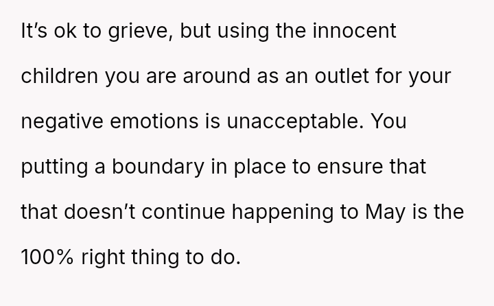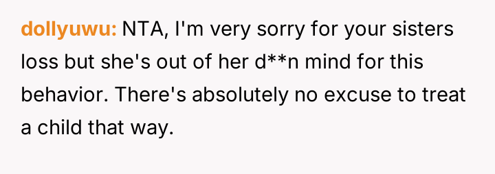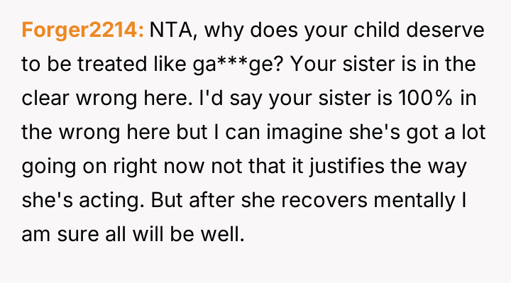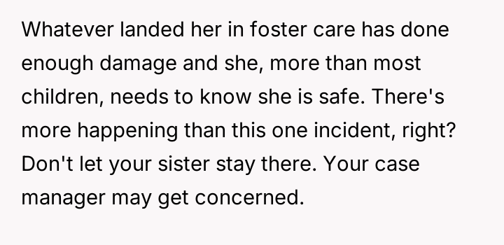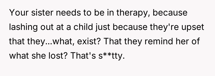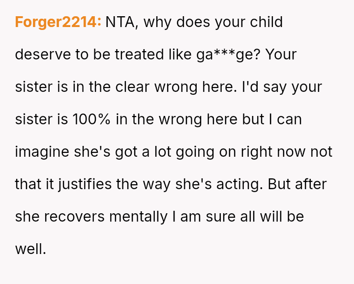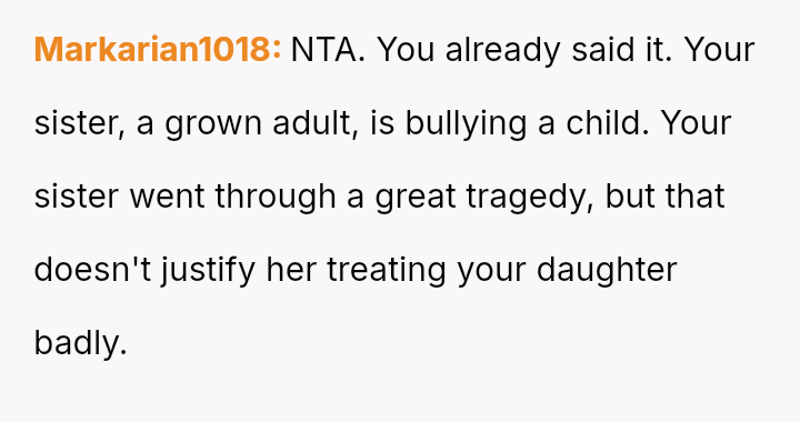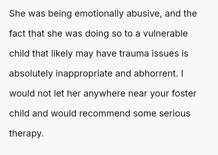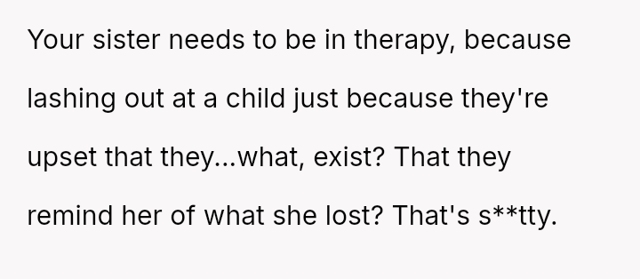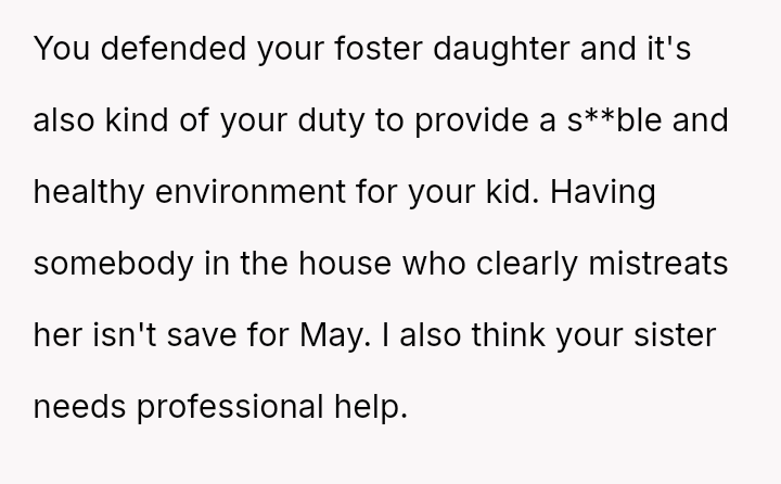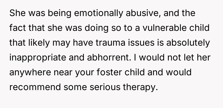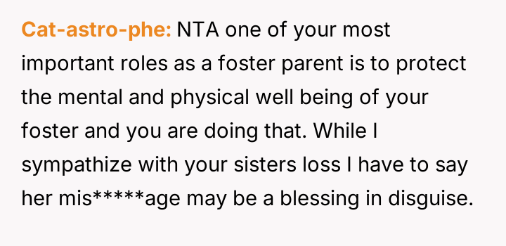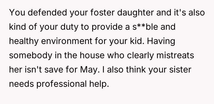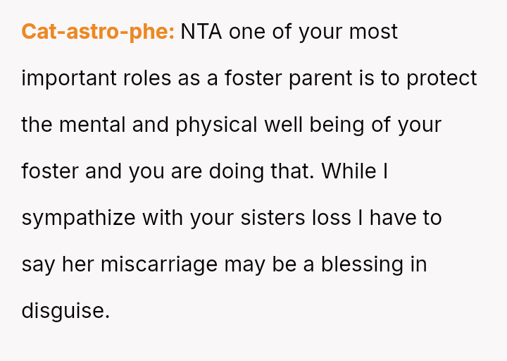 The core question remains whether the OP was justified in ejecting her grieving sister over behavior directed at the foster child, or if she failed to adequately accommodate her sister's profound loss during a time of crisis.