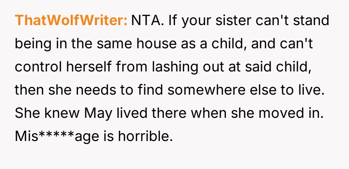 The OP prioritized her daughter's well-being by setting a firm boundary against her sister's inappropriate behavior, leading to the sister leaving the shared residence.