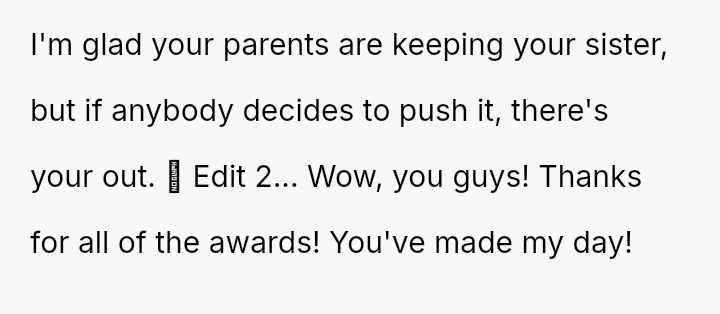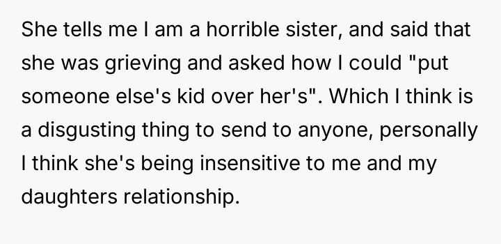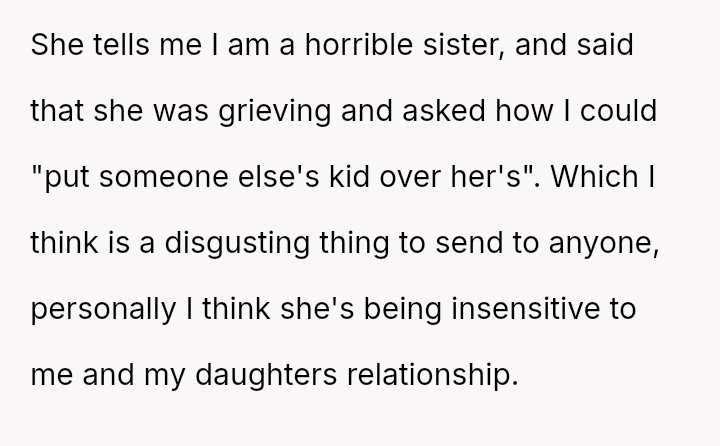 The original poster (OP) is facing a difficult conflict between supporting her grieving sister and protecting her foster daughter from emotional a**se.