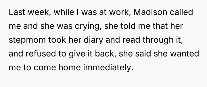 The father found himself caught between the privacy rights of his daughter and the emotional distress felt by his new wife, who believed she was being attacked through the diary entries.