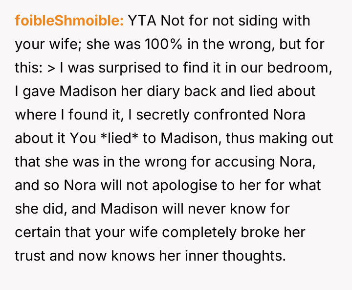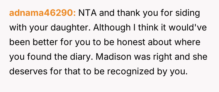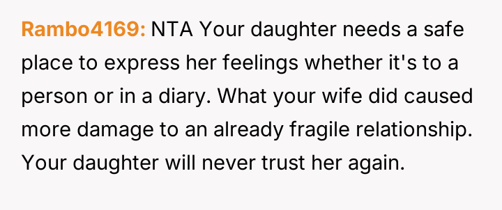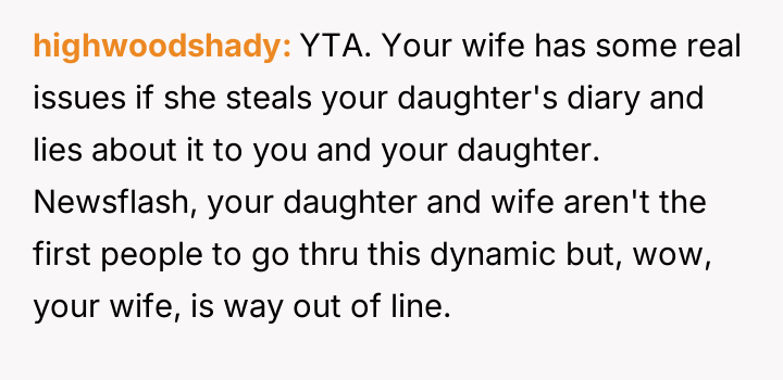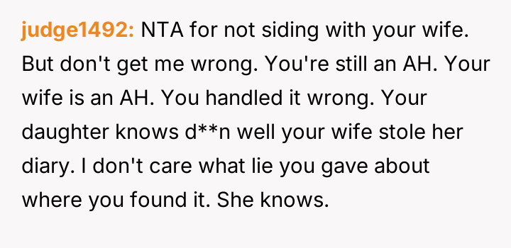 AITA For not siding with wife after she took my daughter's diary?