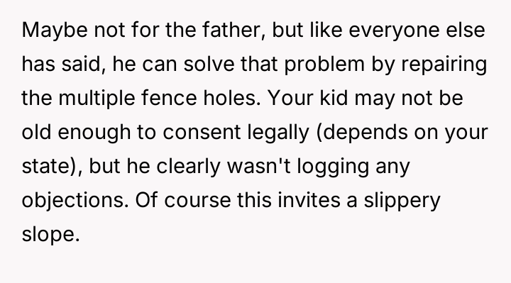 However, when the reported behavior continued, the OP felt he had fulfilled his parental responsibility and refused further involvement, leading to conflict with the neighbor.