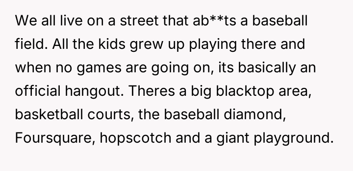 On a street where childhood memories are etched into every corner of the playground and baseball field, the innocence of youth thrives amidst laughter and friendship.