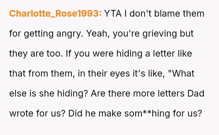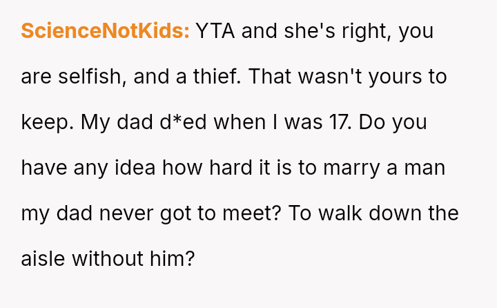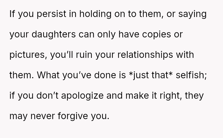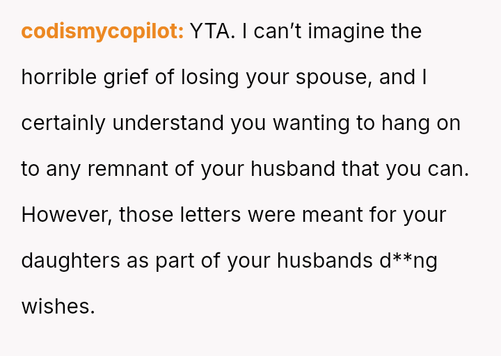 Is the OP justified in prioritizing her immediate need to preserve a connection with her deceased husband over honoring his explicit instructions and her daughter's right to an emotional milestone gift, or was this action a harmful act of grief control that severely damaged trust within the family unit?