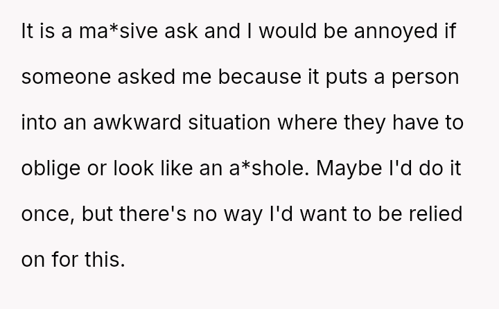 Where should the line be drawn between neighborly support and personal boundary enforcement when one party is in genuine need?