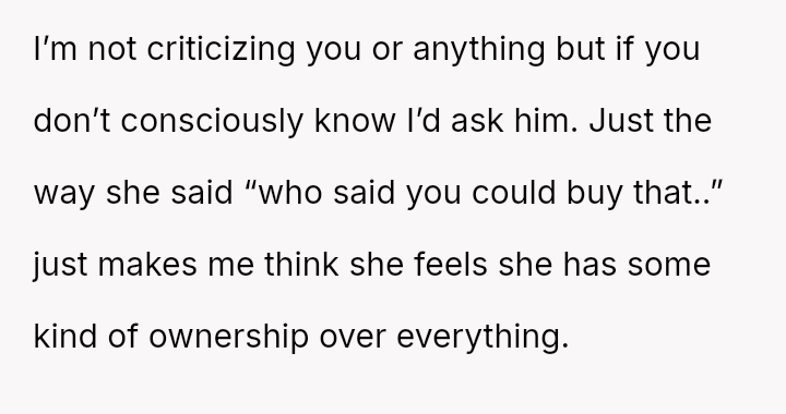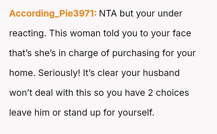 Was the OP justified in confronting her mother-in-law directly about controlling household purchases, or would it have been more effective to wait for her husband to manage the conflict?