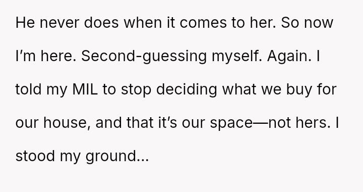 The original poster (OP) reached a breaking point due to continuous interference from her mother-in-law (MIL) regarding decisions in her marital home, leading her to firmly a*sert boundaries about household ownership and control.