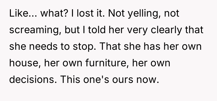 The original poster (OP) reached a breaking point due to continuous interference from her mother-in-law (MIL) regarding decisions in her marital home, leading her to firmly assert boundaries about household ownership and control.