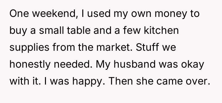Was the OP justified in confronting her mother-in-law directly about controlling household purchases, or would it have been more effective to wait for her husband to manage the conflict?