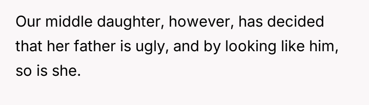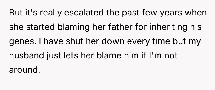 AITA for telling my daughter that she's being cruel by blaming her father for her insecurities about her looks?