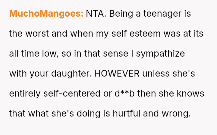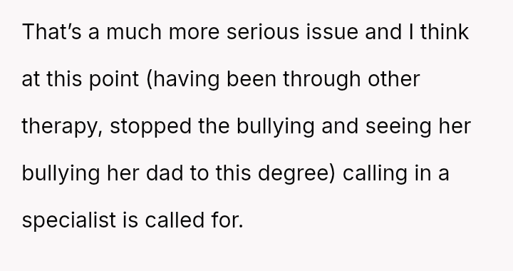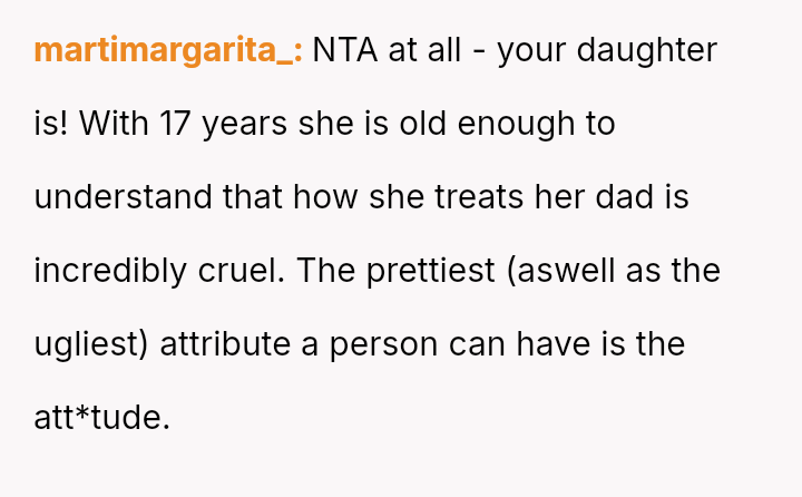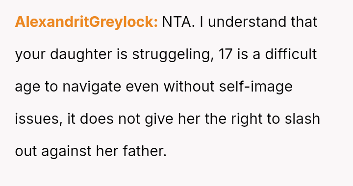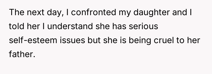 Was the OP wrong to confront her daughter about her cruelty toward her father, even knowing the daughter is struggling with severe self-esteem issues?