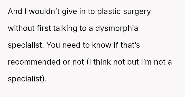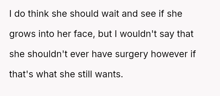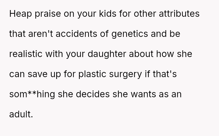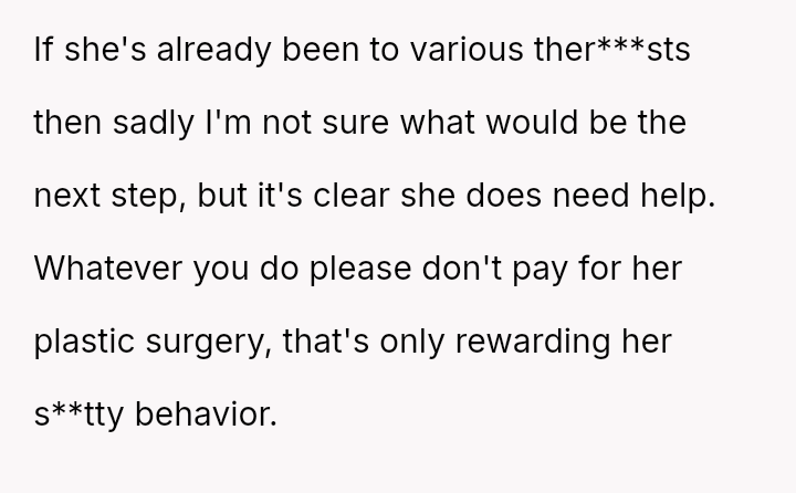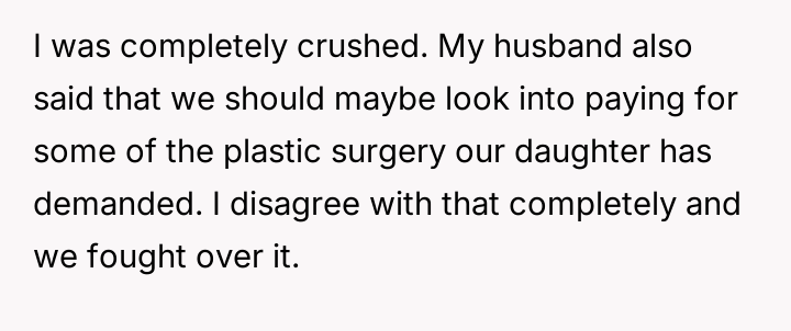 Or is prioritizing the protection of the husband's emotional well-being and rejecting the pursuit of cosmetic surgery the necessary boundary, regardless of the daughter's current reaction?