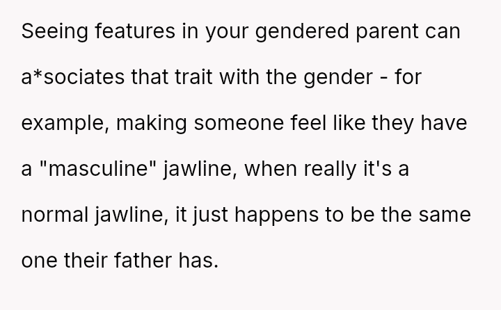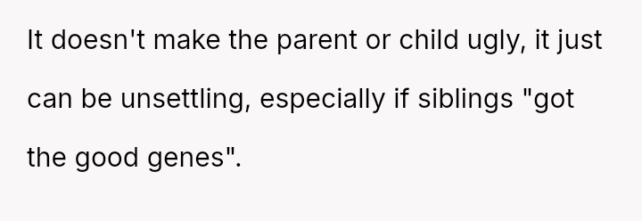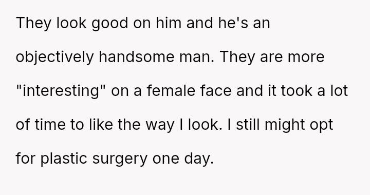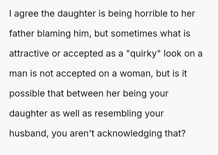 This quiet pain has grown into a wedge, as she lashes out at the very source of her ident*ty—her father’s features she once might have embraced.