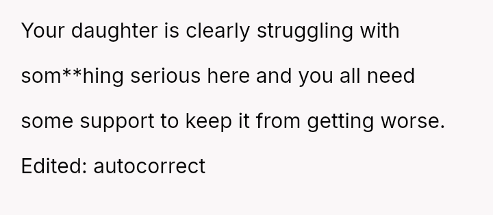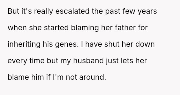 The original poster (OP) is in a difficult position, torn between supporting her daughter's intense feelings of self-worthlessness and defending her husband against unfair blame and emotional distress.