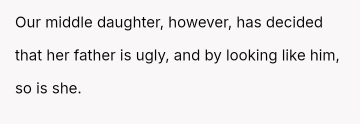 In a family where beauty seems to be a given, a silent storm brews beneath the surface. Their middle daughter, caught between the reflections of her parents, wrestles with a harsh self-judgment that casts shadows over her own worth.