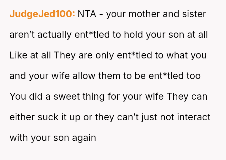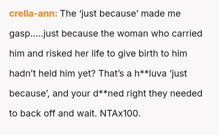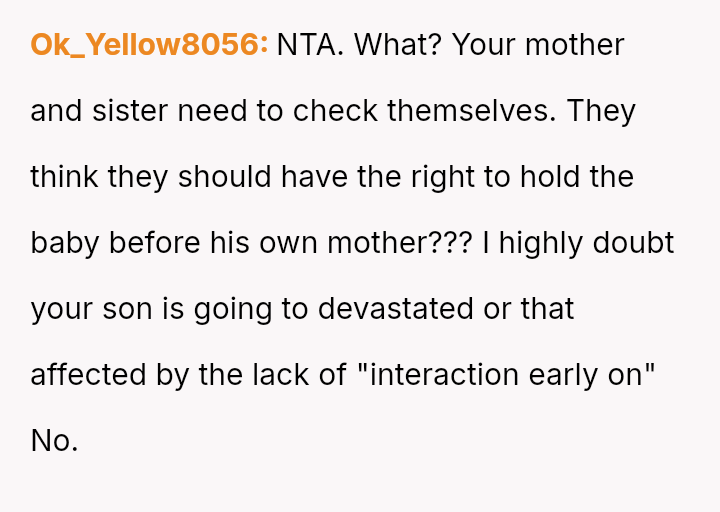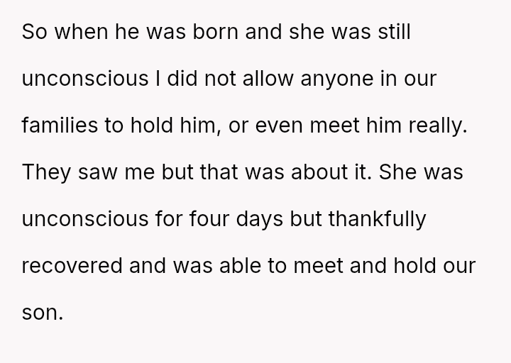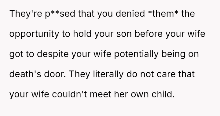Was the OP justified in restricting family access to the newborn to protect his wife's immediate emotional recovery and desire to be the first to hold him, or did this action unfairly deprive the child of early interaction and cause unnecessary offense to close family members?