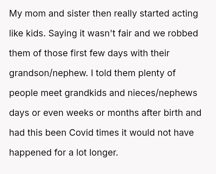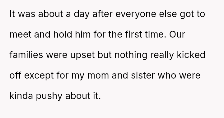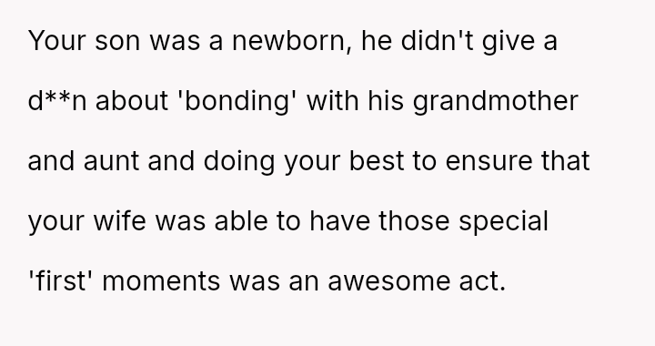The central clash is between the OP's decision to protect his wife's experience and the strong feelings of his mother and sister, who believe they were unfairly denied crucial early bonding time with the baby.