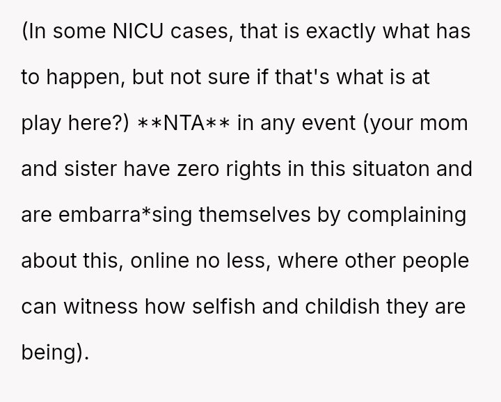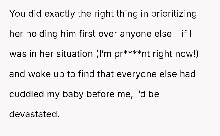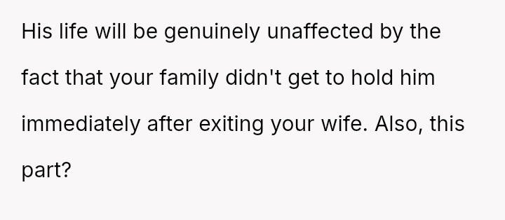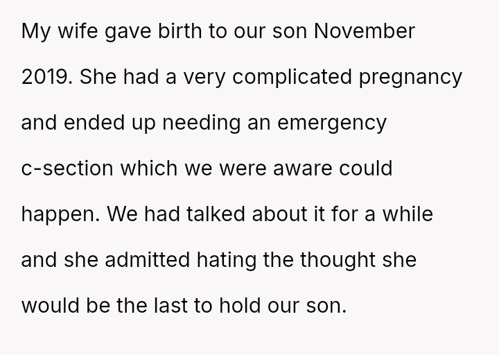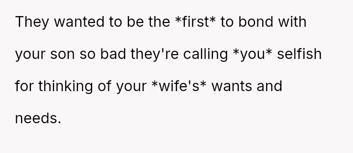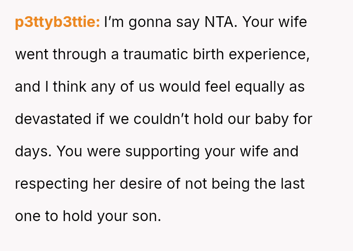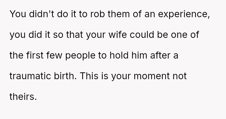 The original poster (OP) is facing conflict because they prioritized their wife's emotional needs regarding their newborn son's first interactions following a traumatic birth.