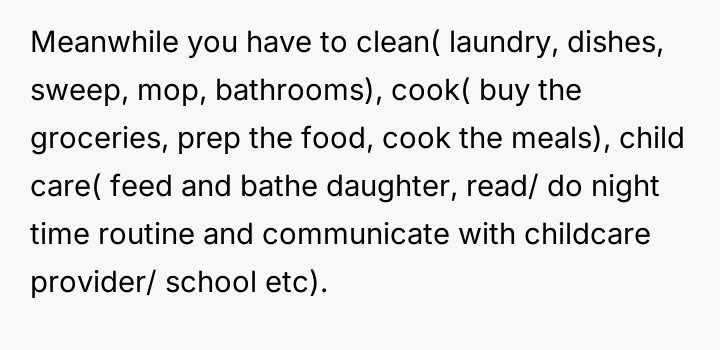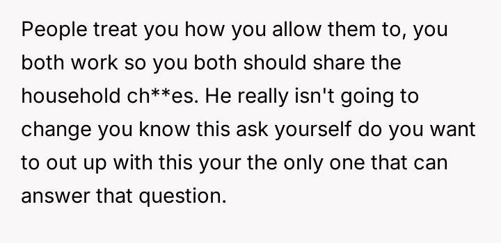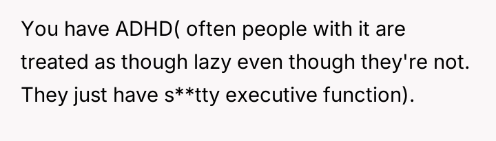 The original poster (OP) is feeling deep resentment stemming from an unequal division of household labor and childcare responsibilities, compounded by her husband's refusal to assist despite her chronic health issues and ADHD.