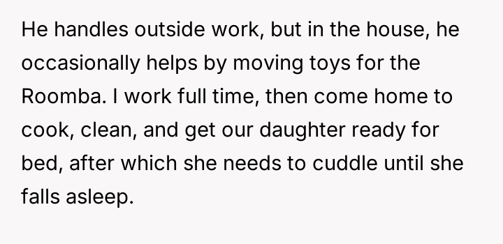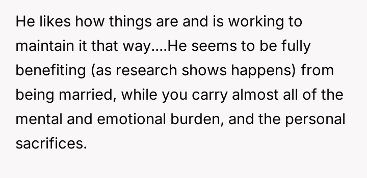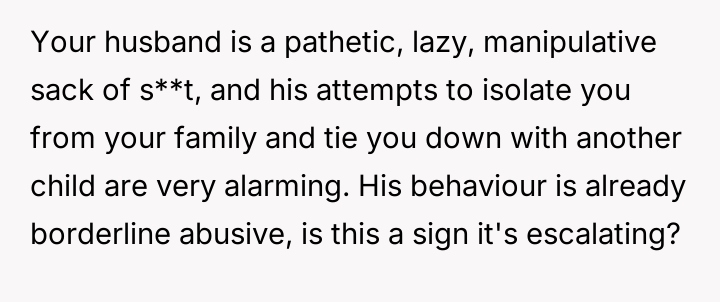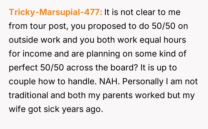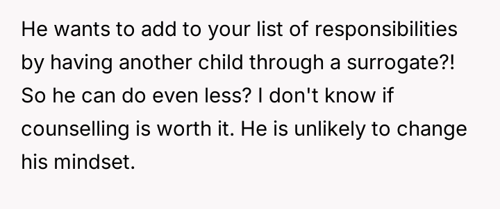 The core question remains whether the disparity in effort justifies halting major life decisions like expanding the family.