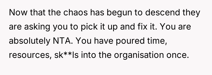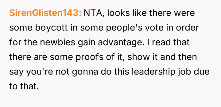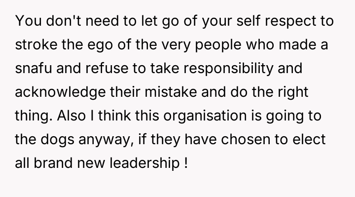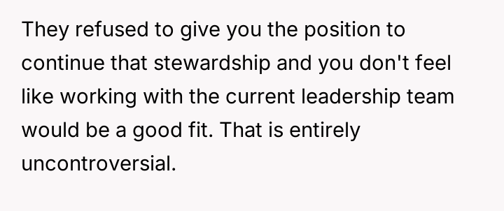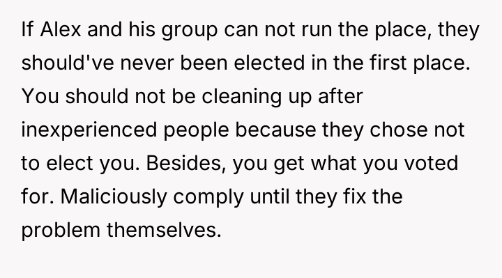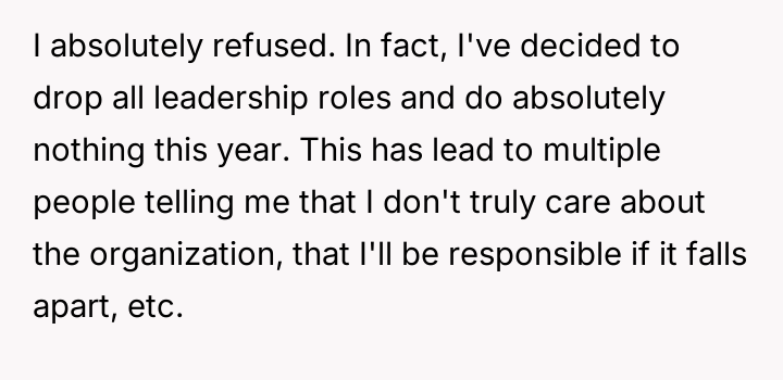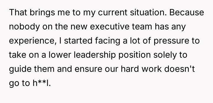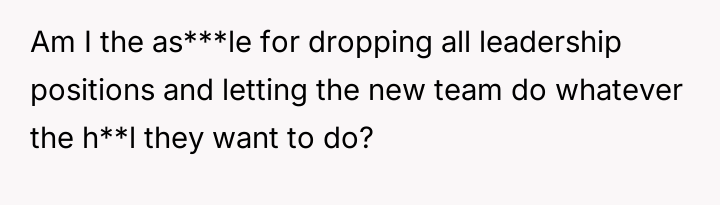 Their decision to withdraw from all leadership roles is a direct response to this perceived lack of respect and the unfair expectation that they should shoulder the burden of guidance for the inexperienced new team.
