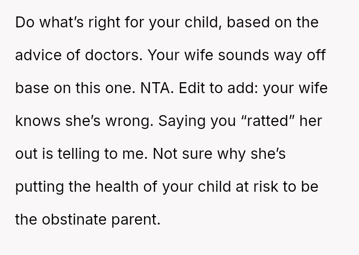 Did the OP's emotional outburst and harsh name-calling justify his wife's demand that he leave, or was his reaction a necessary defense of his child's well-being against medically dangerous choices?