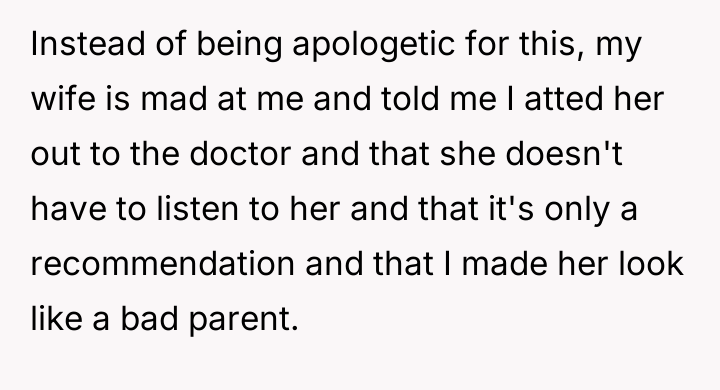 AITA for saying things my wife gives our infant in front of our child’s doctor?