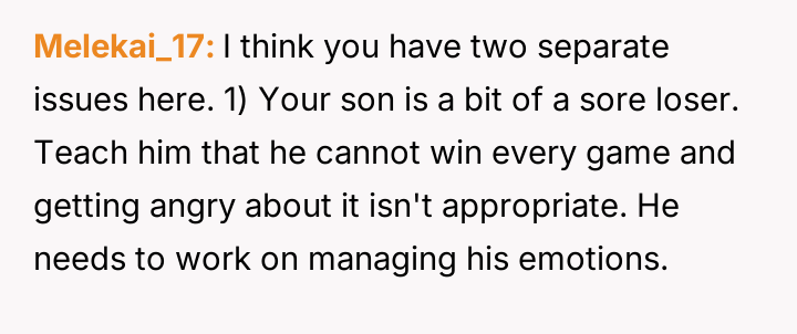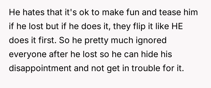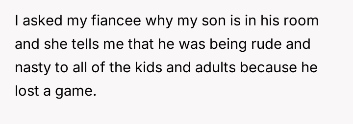 While the fiancée viewed the son's actions (avoiding others after losing a game) as rude and spoiled, the OP validated his son's choice to preemptively withdraw as a reaction to perceived unfairness and teasing from p*ers and perceived lack of support from adults.