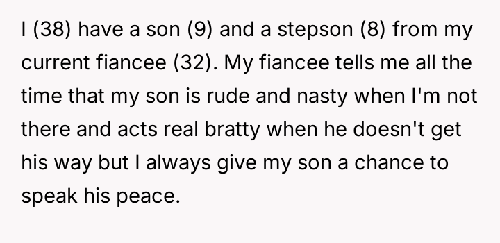 AITA for sticking with my son when my fiancee unfairly punished him?