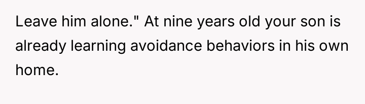 Is it more important to maintain household discipline standards, or to unconditionally support a child who feels systematically targeted and unheard?