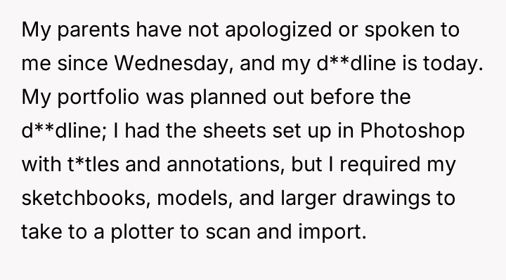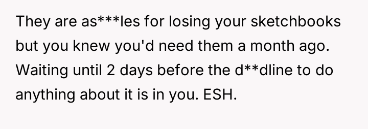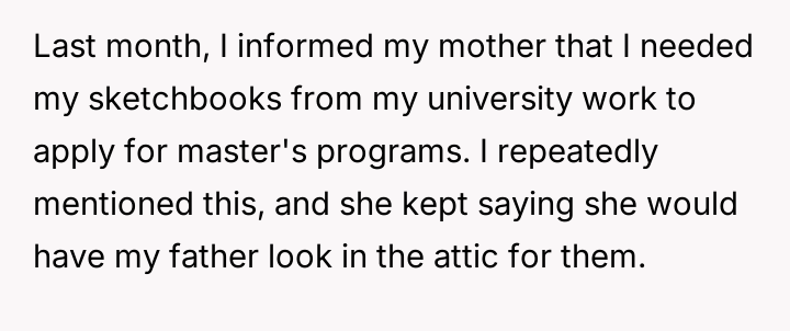 A young student, caught between the weight of d**dlines and the hope of future dreams, faces the painful reality of lost treasures—sketchbooks filled with years of hard work and passion, now seemingly vanished in the chaos of clearing out the past. As frustration and confusion swirl, the emotional turmoil of feeling unheard and overlooked grows.