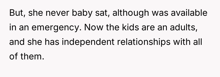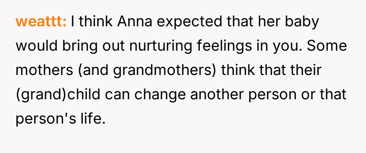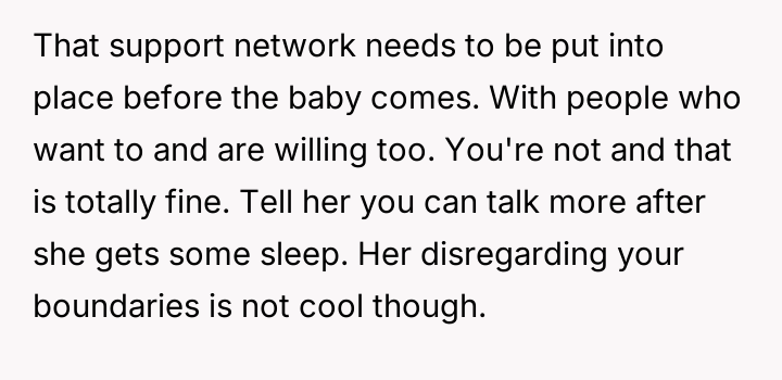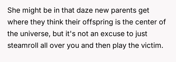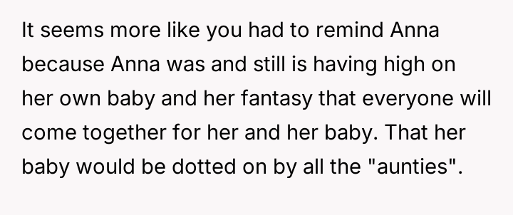 While the OP demonstrated initial support, she refused to integrate the new baby into her life, leading to conflict when Anna felt unsupported and abandoned due to the OP's firm boundaries.