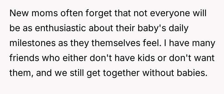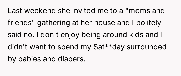 AITA for telling my friend I’m not interested in her baby or being involved in her new mom life?