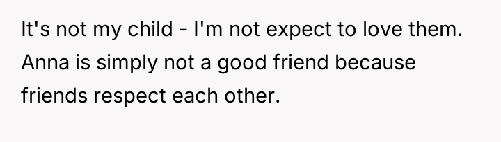 Was the OP too blunt in enforcing boundaries regarding involvement with the baby, or was Anna demanding an unreasonable shift in friendship dynamics based on her new role?