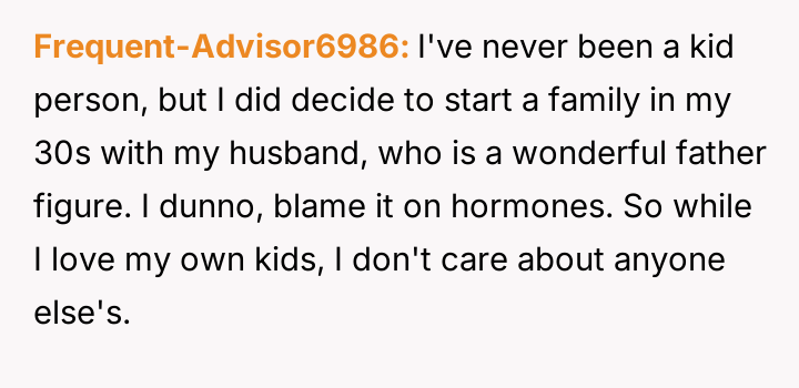 She has always known who she is—someone who walks a different path, one without children. From the very beginning, she embraced a life free from the expectations and pressures of motherhood, standing firm in her truth despite the world’s assumptions.