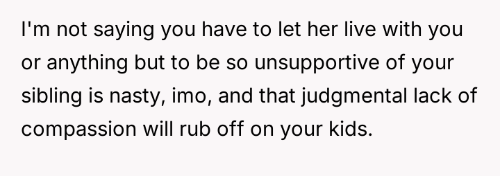 Is the OP justified in prioritizing his children's role models over providing housing to his struggling sister, or was his blunt honesty unnecessarily cruel, warranting an apology to maintain family peace?