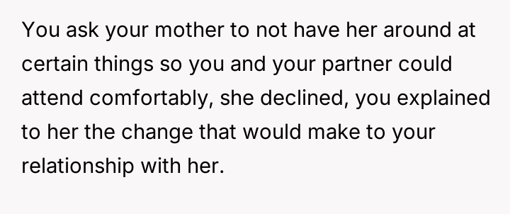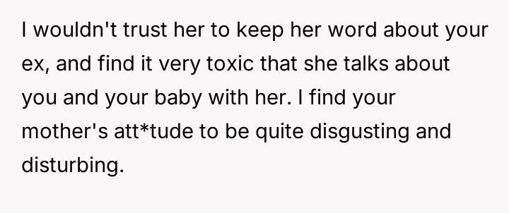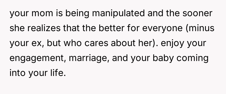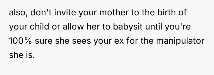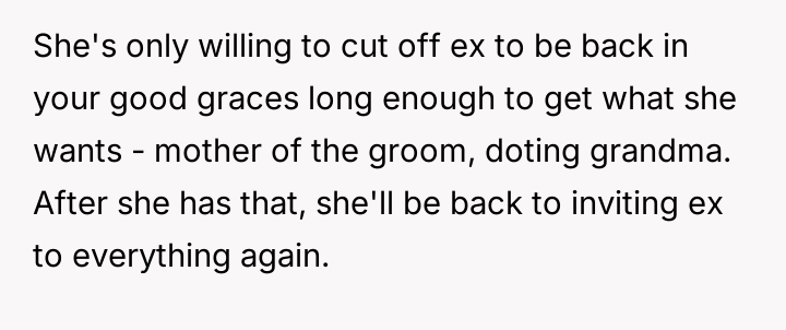 AITAH for threatening to ban my mother from my wedding and meeting her grandchild if she doesn't cut off my ex-girlfriend?