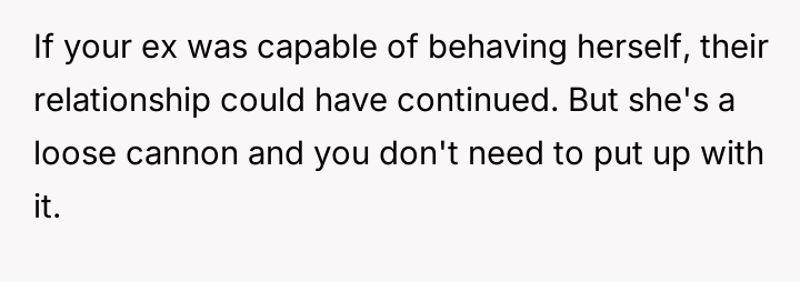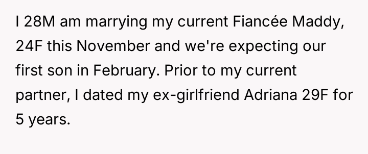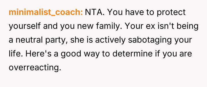 The original poster (OP) feels justified in taking strong action to protect his new family unit from h***ssment by his ex-girlfriend, Adriana.