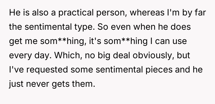 In the quiet rhythms of their everyday lives, a mother's heart quietly yearns for moments of sentimental connection, while her husband’s practicality shapes their world in unspoken ways.