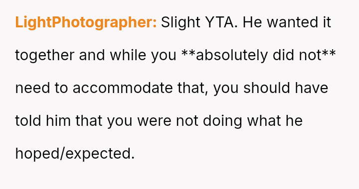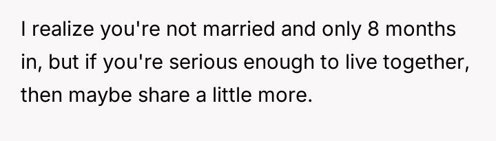 Was the OP's independent action a necessary solution to her immediate frustration or an undermining of their partnership goals?