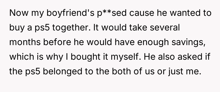 AITA for buying a ps5 without my boyfriend and saying it's mine?