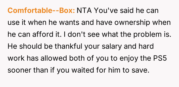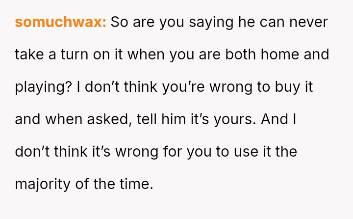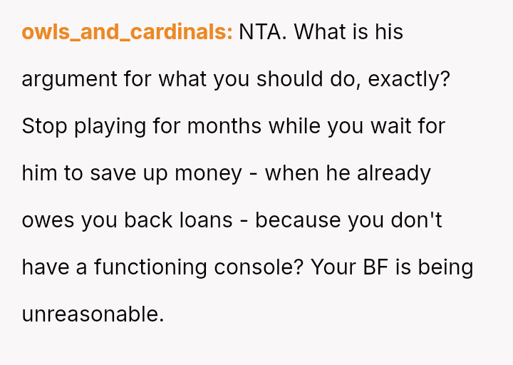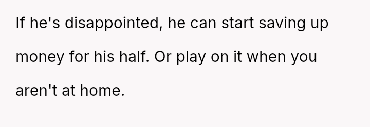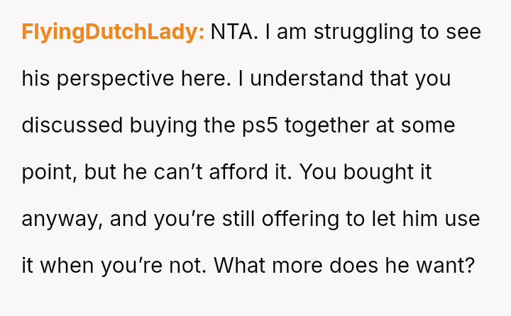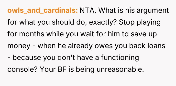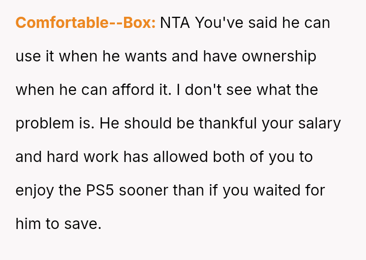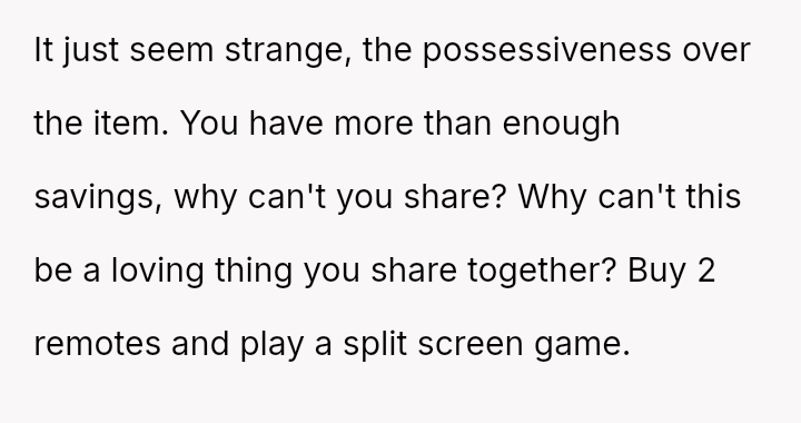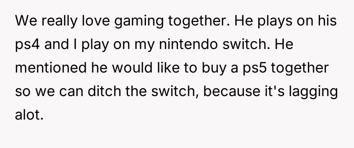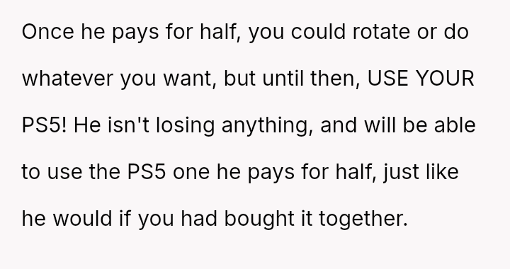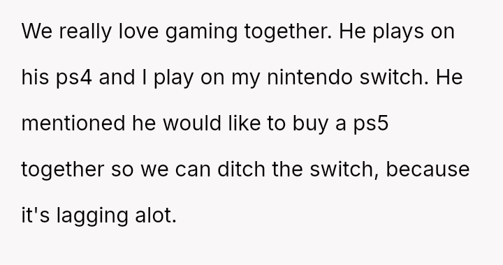 The original poster (OP) faced a situation where her desire to upgrade her gaming experience conflicted with her boyfriend's plan to purchase the same item collaboratively over time.