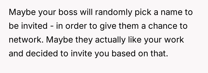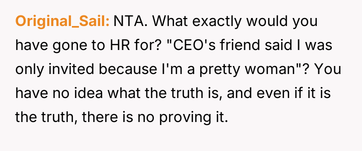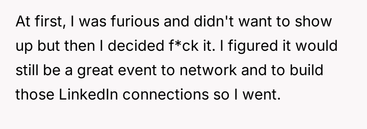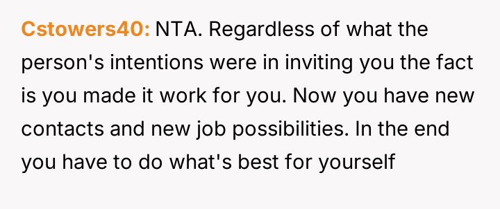 Considering the clear benefits gained from networking versus the ethical implications of attending an event based on superficial criteria set by the host, was the original poster justified in prioritizing professional advancement over protesting perceived misogyny, or should they have refused the invitation and reported the conduct?