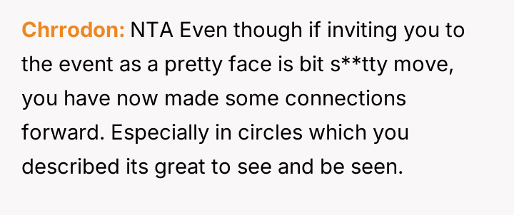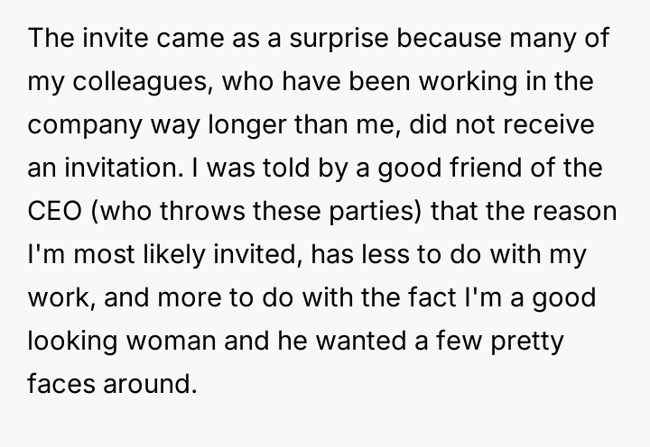 AITA for attending a party even though I was only invited as a pretty face?