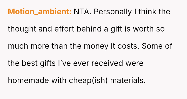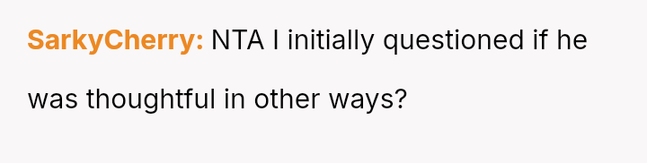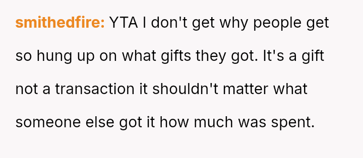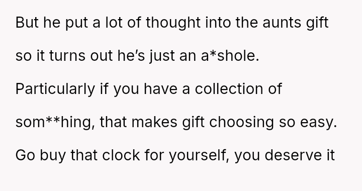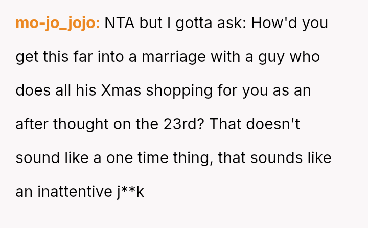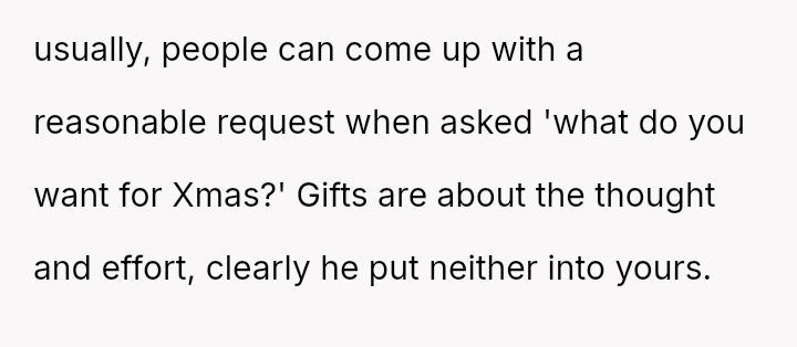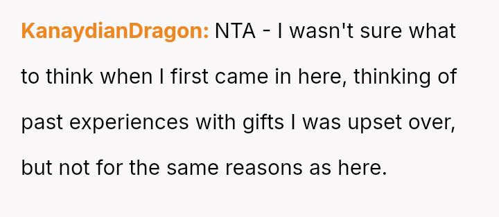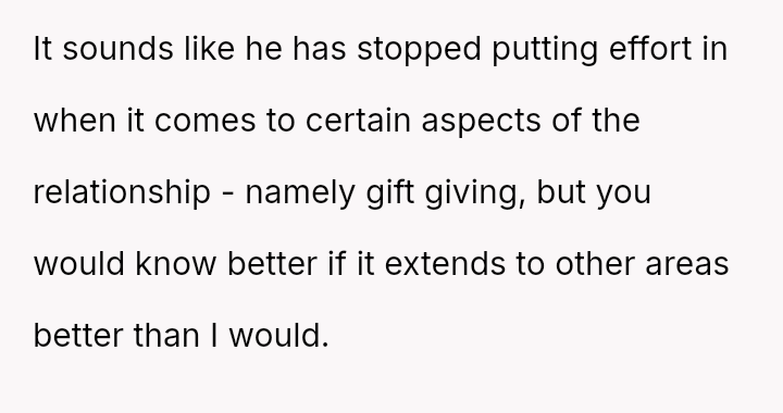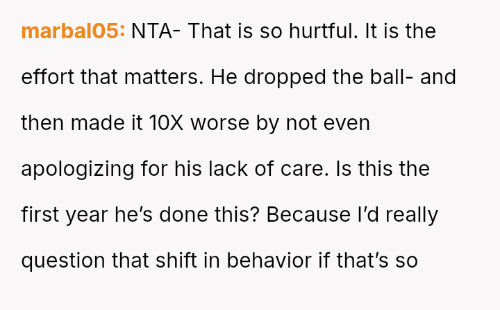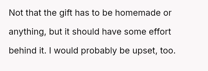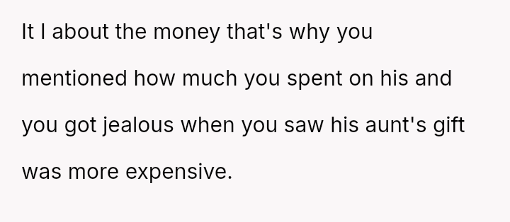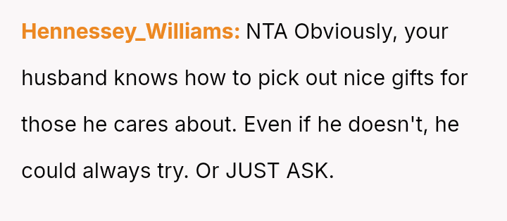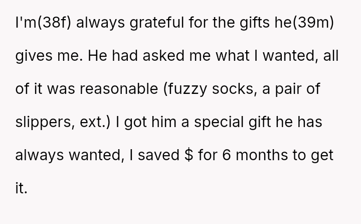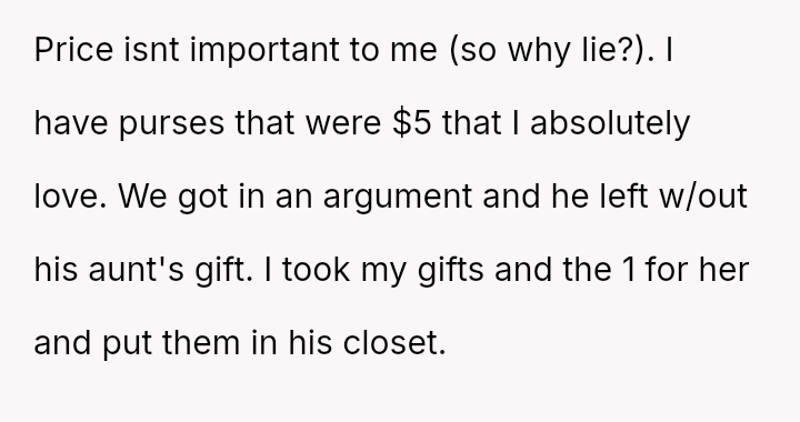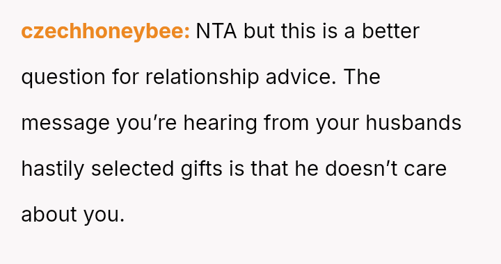 The original poster is clearly distressed because the gifts received from her husband demonstrated a significant lack of care and effort compared to the gift he purchased for his aunt.